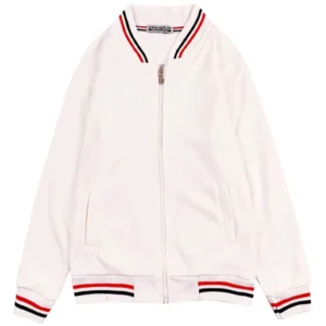 大量供應拉鏈款式棒球褸 時尚設計淨撞色領棒球褸 棒球褸中心 白色 700G 金絲絨 SKBJ007