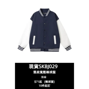 [網上下單平價棒球褸]|撞色袖設計|現貨主推落肩棒球服 ZZD701-TS-SKBJ029