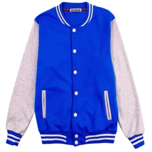 網上下單訂做撞色棒球褸 團體訂做長袖啪鈕棒球褸 棒球褸供應商 彩藍色 500G 75%Cotton 25%Polyester SKBJ009