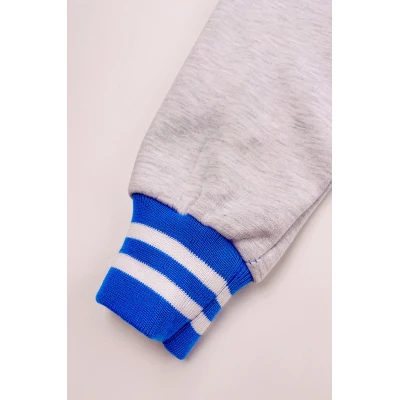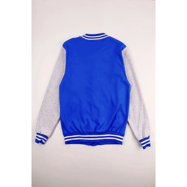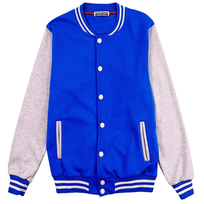 SKBJ009 撞色棒球褸,以經典的棒球褸設計,採用 彩藍色 500G 75% 棉 25% 聚酯纖維 面料,觸感柔軟舒適,透氣吸汗,適合四季穿着。袖子採用 灰色 面料拼接,更顯時尚潮流。