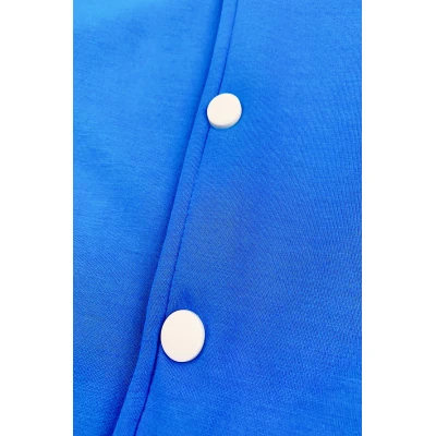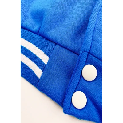 網上下單訂做撞色棒球褸 團體訂做長袖啪鈕棒球褸 棒球褸供應商 彩藍色 500G 75%Cotton 25%Polyester SKBJ009