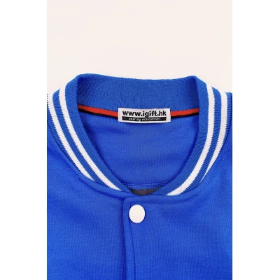 搶先評價 “網上下單訂做撞色棒球褸 團體訂做長袖啪鈕棒球褸 棒球褸供應商 彩藍色 500G 75%Cotton 25%Polyester SKBJ009”