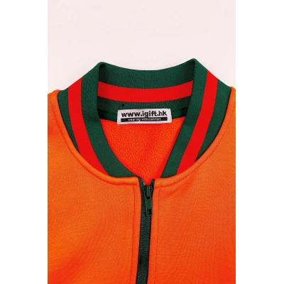 個人設計橙色撞色扁機 訂做拉鏈款式棒球褸