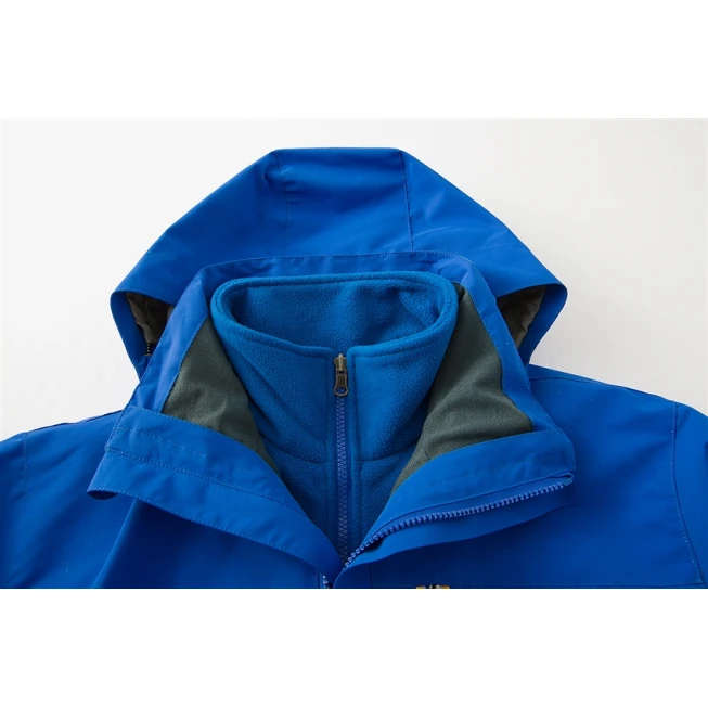 - 兩件套設計,外層衝鋒衣搭配內層絨布保暖內襯,多種穿著方式,滿足不同天氣需求。