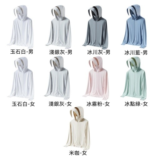 - 領型: 連帽立領,內附遮陽帽舌設計,有效阻擋紫外線及陽光直射。