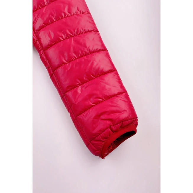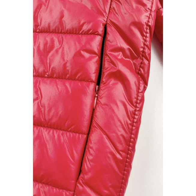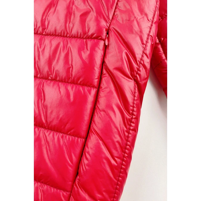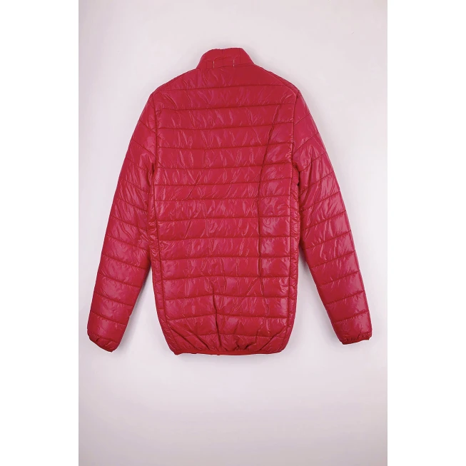 這款紅色輕薄團體羽絨外套,採用梳織全滌材質,輕盈舒適,保暖性佳,適合各種戶外活動。