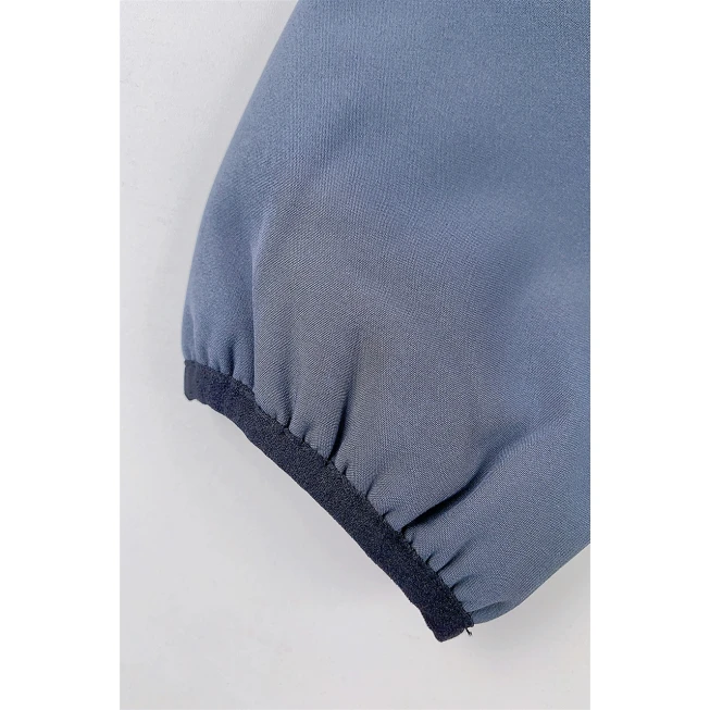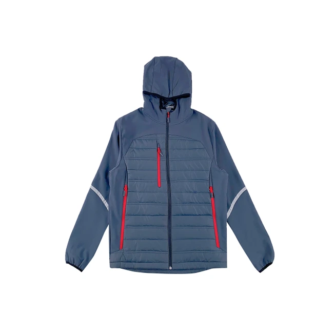 訂製春季時尚新款工作外套 設計保暖防風防寒防護衣彈性帶帽 寶藍色撞色灰色 反光條設計 多口袋設計 袖口帽延收緊 戶外工作服 防寒固定兜帽 SKVM040